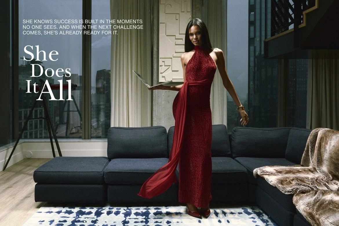 The She Does It All campaign for Miss Circle’s Spring Collection was developed in close collaboration with the brand’s founder, translating her personal story into a grounded yet aspirational visual narrative. Launching during Women’s History Month, the campaign explored the realities of modern womanhood—centering a city-based businesswoman who seamlessly moves between roles as a mother, professional, and style-conscious individual. From pre-production through final execution, I helped shape the overall direction, ensuring the concept captured both the polish and the pressure of a life that is constantly in motion. The campaign intentionally balanced moments of glamour with the often unseen, day-to-day responsibilities—school runs, meetings, home life, late-night emails—portraying a woman who is undeniably fabulous, yet navigating a packed, multifaceted life. I also led post-production social and website rollout, ensuring the storytelling remained cohesive and impactful across digital platforms.